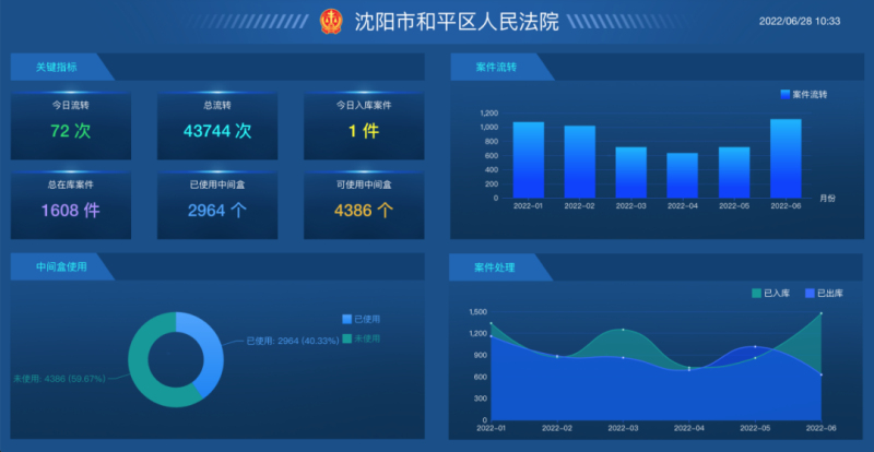 自2021年5月“智能中间库”正式启用以来,入库案件量累积超过14820件,总流转次数超过43744次。