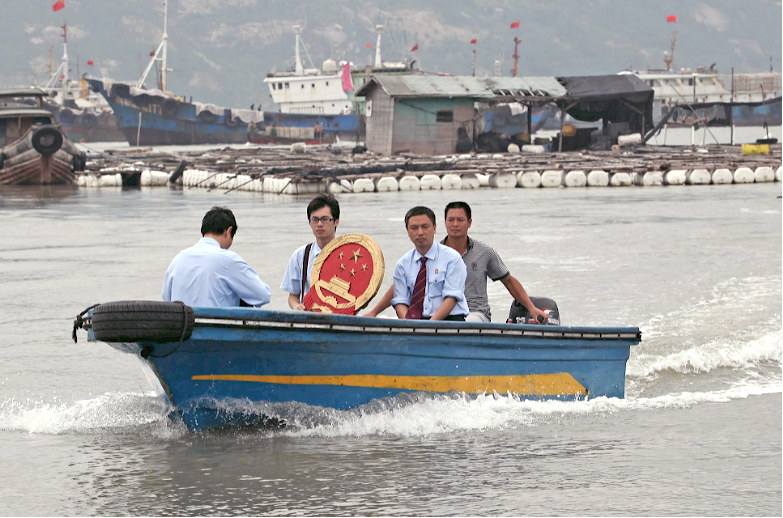 三都海上巡回法庭设立之初,法官们带着国徽,坐着快艇,到渔排上审理、调解案件,一张方桌四张方凳,是当时的真实写照。2018年海上养殖综合整治开展以来,法庭依托三都岛、海上110、海上渔排等巡回审判点,积极打造诉源治理新模式,实现矛盾纠纷就地排查、就地化解。