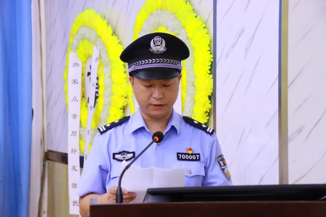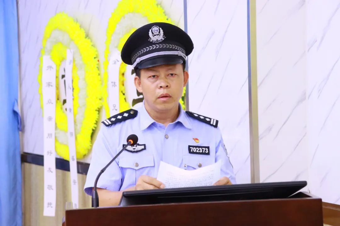 百色市公安局党委委员、政治部主任滕锋宣读公安部政治部、自治区公安厅政治部发来的唁电。