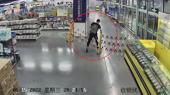图说:罗某盗窃茅台酒公共视频截图。普陀公安分局供图(下同)