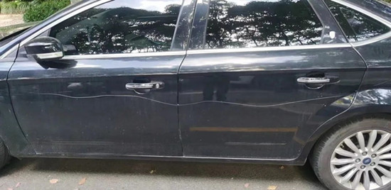 经现场勘查发现,小区内多辆汽车均有不同程度的划伤,有的甚至被从车尾划到了车头。由于车辆大部分是连续停放,民警怀疑是同一人所为。