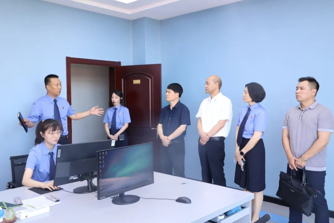 图为白振平检察长实地察看沧州市青县人民检察院公益诉讼研判室。