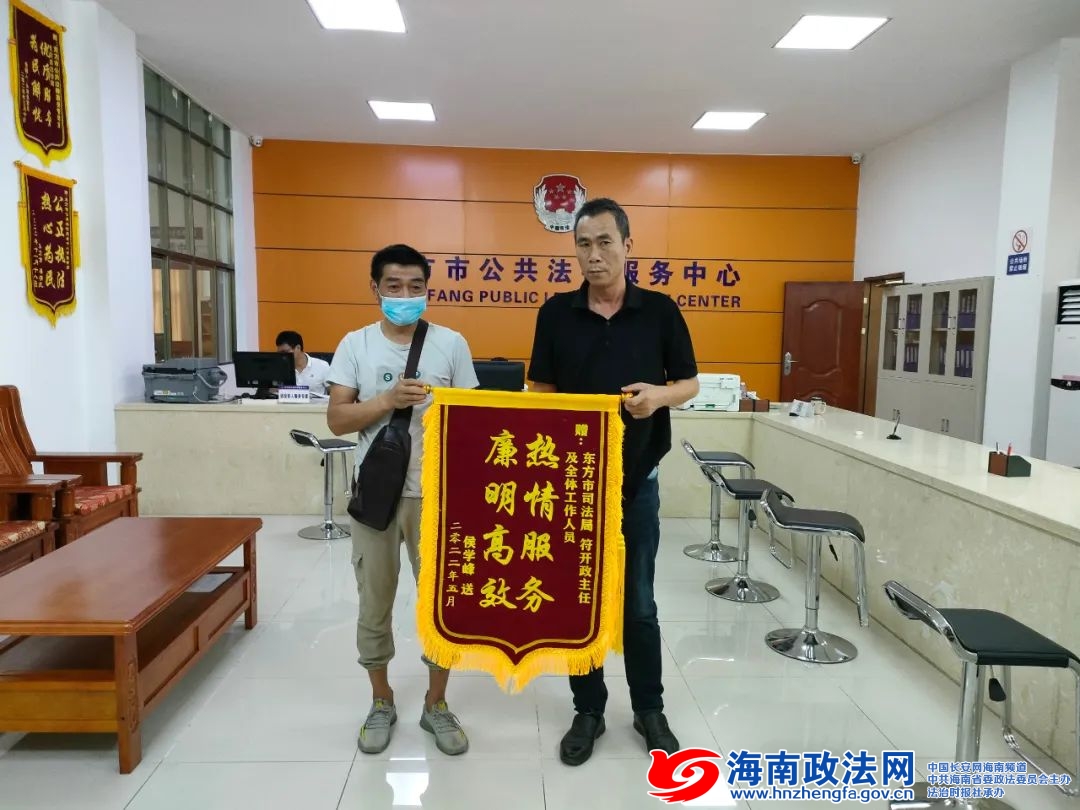 “我代表全体工友向东方市司法局表示感谢,谢谢你们为我们讨回了拖欠的工资。”6月1日下午,东方市司法局公共法律服务中心迎来了一位特殊的客人,侯师傅手持“热情服务 廉明高效”“情系群众 为民排忧”的锦旗,送来了对东方市司法局公共法律服务中心主任符开政及“1+1”中国法律援助志愿律师丁明的感谢之意。