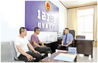图为王文喜(右一)在检察服务中心接待来访群众。通讯员 周润霞 摄