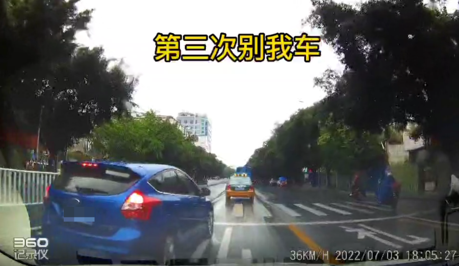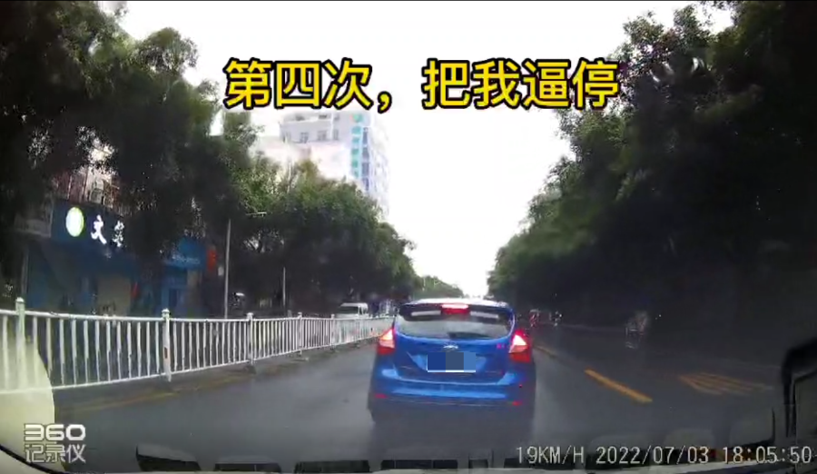 根据覃先生提供的行车记录仪画面显示:蓝色小轿车在道路上多次变道,期间当事人还下车发生争吵。