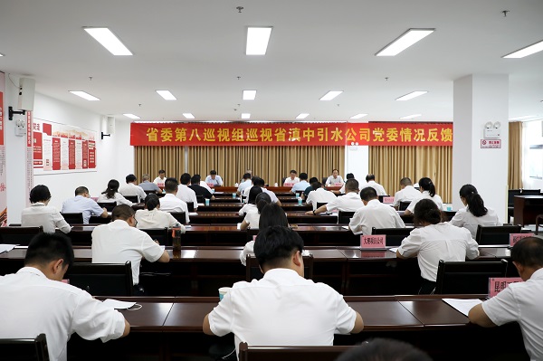 根据省委统一部署,2022年7月12日,省委第八巡视组向云南省滇中引水工程有限公司党委反馈了巡视情况。会前,省委巡视办副主任李文俊传达了省委书记王宁在主持省委常委会会议听取十一届省委第一轮巡视情况汇报时的讲话要求,省委第八巡视组组长孟端平向公司党委书记、董事长彭文华反馈了巡视情况。会上,参会人员集中学习了习近平总书记关于巡视整改的重要论述及党规党纪有关规定要求,孟端平向云南省滇中引水工程有限公司党委领导班子反馈了巡视意见,李文俊对巡视整改提出明确要求,彭文华主持反馈会议并作表态讲话。