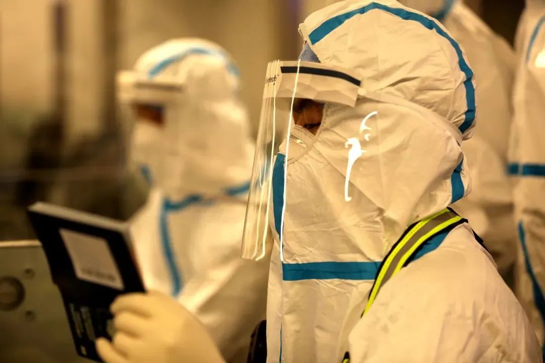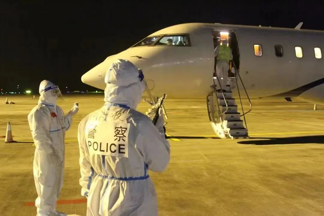 桂林边检站移民管理警察执行清舱任务。(梁龙摄)