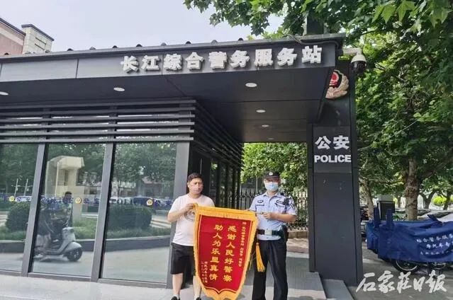 近日,市民刘先生来到石家庄市公安局高新区分局长江综合警务服务站,为民警送来了“感谢人民好警察助人为乐显真情”的锦旗,以感谢民警为其找到走失的孩子。