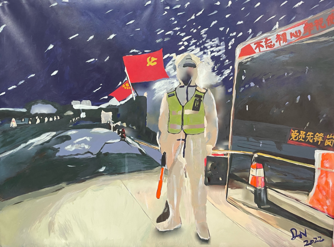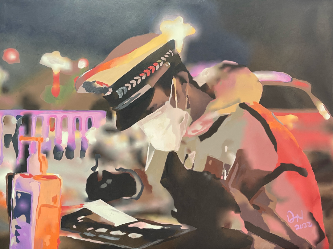 2020年新冠肺炎疫情发生以来,近三年时间里,为了尽全力去发现、挖掘、写尽、宣尽战友们的抗疫事迹、故事,我同战友们一起,站在离疫情最近的地方。这是我从事近7年公安宣传工作中一段非常难忘的经历,也是我从警近十二年以来感受最特别的三年,感动于我真实看到的身边的民警辅警战友的无私付出,所以利用自己近三年所有周末、晚上的业余时间创作一系列公安抗疫主题油画作品。作品灵感照片均盲选自人民公安报及地方政务新媒体平台,作品人物故事是千千万万个基层民警辅警无畏抗疫的缩影,更是人民公安三年抗疫的冰山一角。谨以此作品致敬人民警察!献礼伟大的党和伟大的祖国!