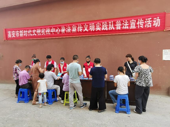 炎炎夏日,普法正当时。7月27日,恰逢“八一”建军节来临之际,高安市司法局新时代文明实践普法宣传队来到了筠阳街道关下四村,集中宣传《民法典》《退役军人保障法》等法律法规。 活动期间,过往群众纷纷驻足,被醒目的横幅和身穿红色马甲的志愿者们吸引。志愿者们拿起手中的法律法规宣传册分发给现场的大人和小孩,引导他们关注与自身权益相关的法律法规知识。现场的志愿者们通过浅显易懂的语言解答了现场群众咨询的法律法规问题,对《民法典》中群众关心的婚姻家庭、继承等常见法律问题进行了深入浅出地讲解,引导群众利用法律武器来维护自身的权益;同时,对《退役军人保障法》中的教育培训、就业创业、法律责任等细则进行了讲解。 活动现场,共发放了宣传手册200余份,普法宣传小礼品50多件,解答法律咨询5起。通过此次活动,提高了群众的法治意识和法治观念,营造了良好的法治氛围。 |