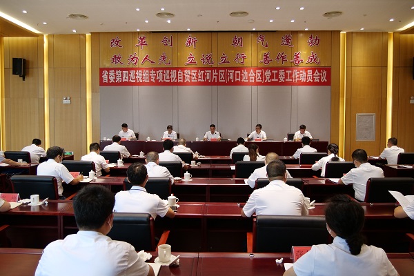 按照省委统一部署,7月29日,省委第四巡视组专项巡视自贸区红河片区党工委工作动员会召开。会前,巡视组组长徐卫民主持召开与自贸区红河片区党工委书记吴世雄的见面沟通会,通报了巡视任务,提出了工作要求;巡视组副组长普翠琼传达了省委书记王宁听取巡视工作有关情况汇报时的讲话要求。会上,徐卫民组长作了动员讲话;普翠琼副组长通报了干扰、对抗巡视的一些典型问题;吴世雄书记主持会议并表态讲话。