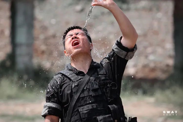 任何文字与站在烈日下几个小时的煎熬相比都那么苍白无力,无法用语言描述血肉之躯与大自然的艰难抗衡。特警队员们一次次用身体挑战着体能的极限,因为他们知道,如果在训练场上留下小的遗憾,就可能在明天的战场上增添大的危险。