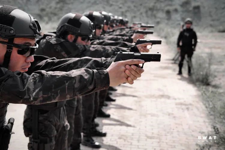 清晨7点30分,从第一声哨令开始,一天的常规训练拉开了帷幕。38摄氏度的高温天气,特警队员们穿着作战服,整齐划一,训练有素,争分夺秒踏上开往靶场的警车。