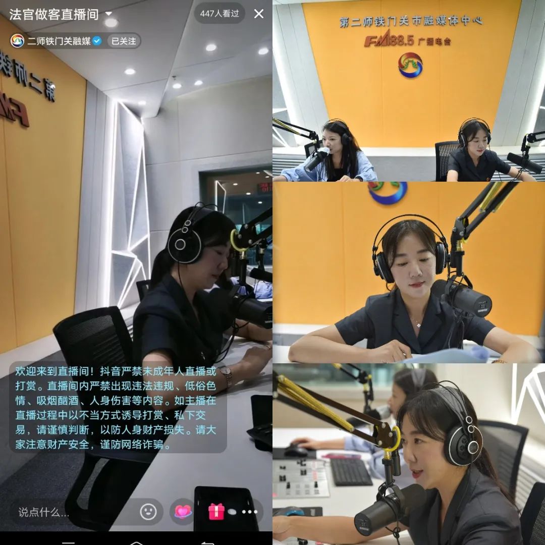 8月3日,库尔勒垦区人民法院法官孙文走进第二师融媒体直播间,通过FM88.5电台开展线上普法。