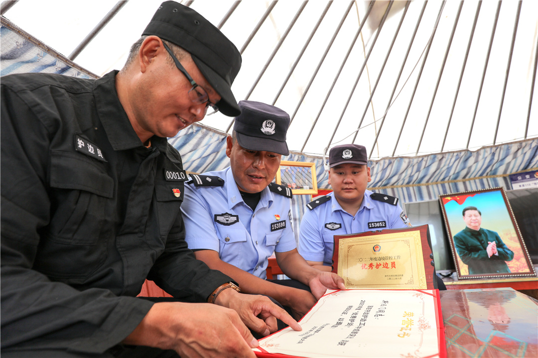 “草原上牧民的视力都是非常好的,能看清距离很远的东西。”额布德格边境派出所副所长沙其尔笑着说,“我们边境派出所管辖面积有225平方公里,边境线长47.125公里,单单依靠派出所的警力来管辖这么大面积是很吃力的,但护边员在这边境线附近住着,对想要来这附近从事非法活动的人来说都是一种震慑,同时对于我们的工作也起到了很大辅助作用。”