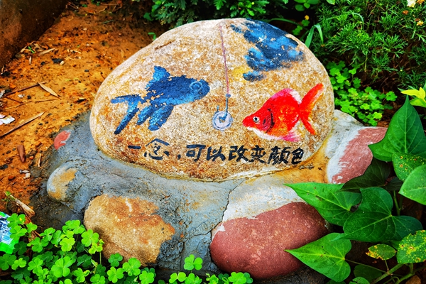 “这些石头大部分都是村民自发地从河道里捡来的。”自从村民听说村委会要组织人在石头上画画,需要好看的石头后,就陆续送来一些石头,将原本静静躺在河道中的石头引用到清廉村居建设当中来,让石头在画中动起来、在字中活起来。