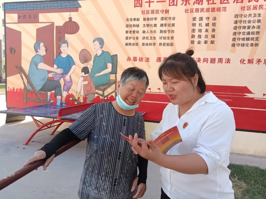 白杨社区党群心连心服务中心是新疆史、兵团史、草湖史的教育基地,今年以来在白杨社区共举办“法治讲堂”10余次,法治宣讲10余次,开展《宪法》《民法典》防电信诈骗等主题宣传50余次,通过法治大培训开展“国家通用语言文字”和“常用法律知识”的同时,对培训分类施教,组织“缝纫理论知识、实践操作技能大赛”“农村实用技术能力”等特色教学。成为以法治引领基层组织建设、促进民族团结进步、带动职工群众创业致富的教育培训和实践基地。