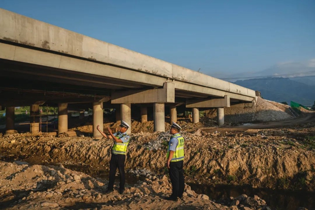 回来路上,路过小峪河段,看到工人正在拓宽高速路面,李一决定下去看看。