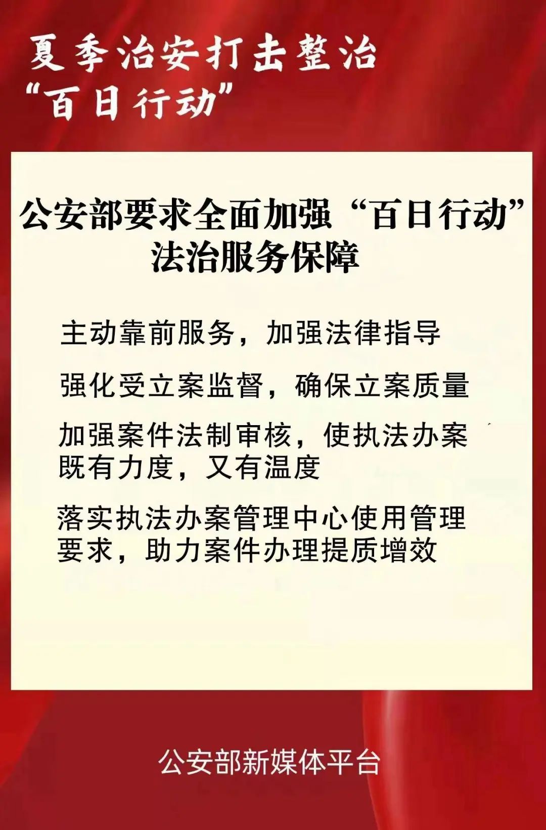 公安部法制局近日下发通知,部署各级公安法制部门提高政治站位,强化责任担当,发挥职能作用,紧紧围绕夏季治安打击整治“百日行动”,全力做好法治服务保障,以实际行动落实严格规范公正文明执法要求,维护社会安全稳定。