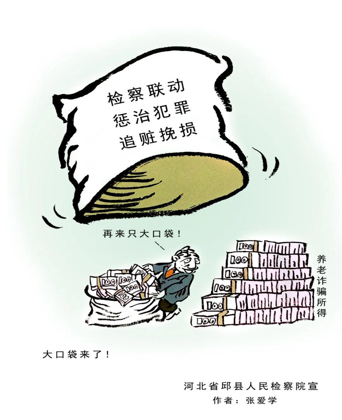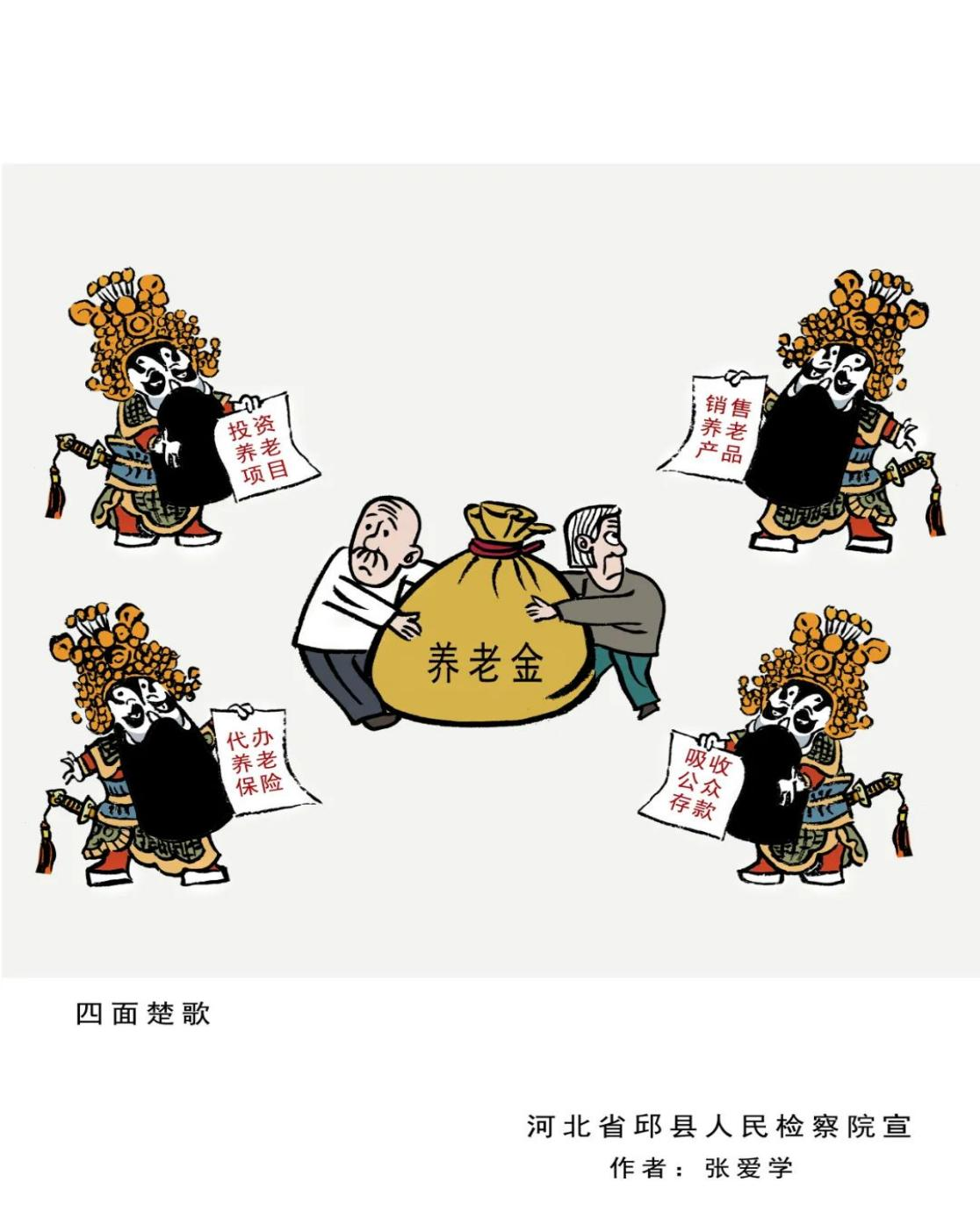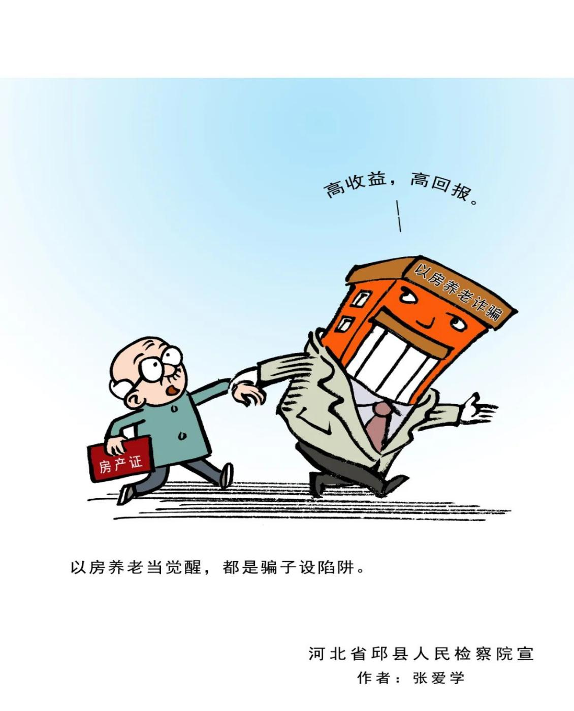 近年来,以提供“养老服务”、投资“养老项目”、销售“养老产品”、代办“养老保险”等为名,侵害老年人合法权益的各类诈骗违法犯罪行为时有发生,给老年人造成了财产损失和精神伤害。邯郸邱县人民检察院借助“漫画之乡”优势,立足检察职能,制作了防范养老诈骗系列漫画。这些漫画形象、生动、幽默,让人过目不忘,犹如一双“慧眼”,帮助群众轻松识别诈骗套路,提醒广大群众特别是老年人,要提高警惕,不贪图小利、不轻信他人,让不法分子“不敢骗、不能骗、骗不了”。