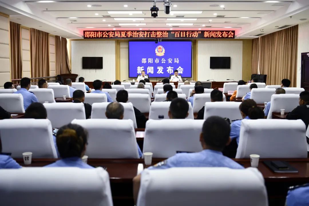 8月19日,邵阳市公安局召开夏季治安打击整治“百日行动”新闻发布会,通报“百日行动”取得的阶段性战果,展现公安机关打击违法犯罪、维护社会稳定的信心和决心。市局党委委员、副局长谢伟宏发布新闻。