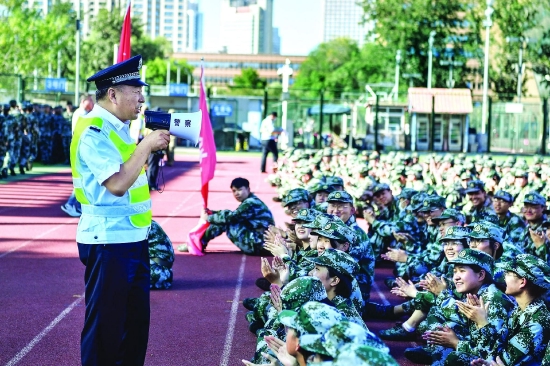 为进一步提升大学生防骗意识和能力,有效遏制校园电诈案件,日前,公安南开分局学府街派出所民警来到天津大学,利用军训间隙讲解常见电信网络诈骗类型,特别是针对校园贷、刷单返利等电诈手段,发布预警提示、传授防范技巧,为大学生上好校园反诈“第一课”。