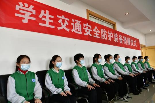 荧光志愿者设立“护学岗”,开展“一盔一带”活动,携手多家爱心企业为中小学捐赠4万余件反光背心、为居民赠送1.5万个电动车安全头盔,筑牢交通安全保护墙。