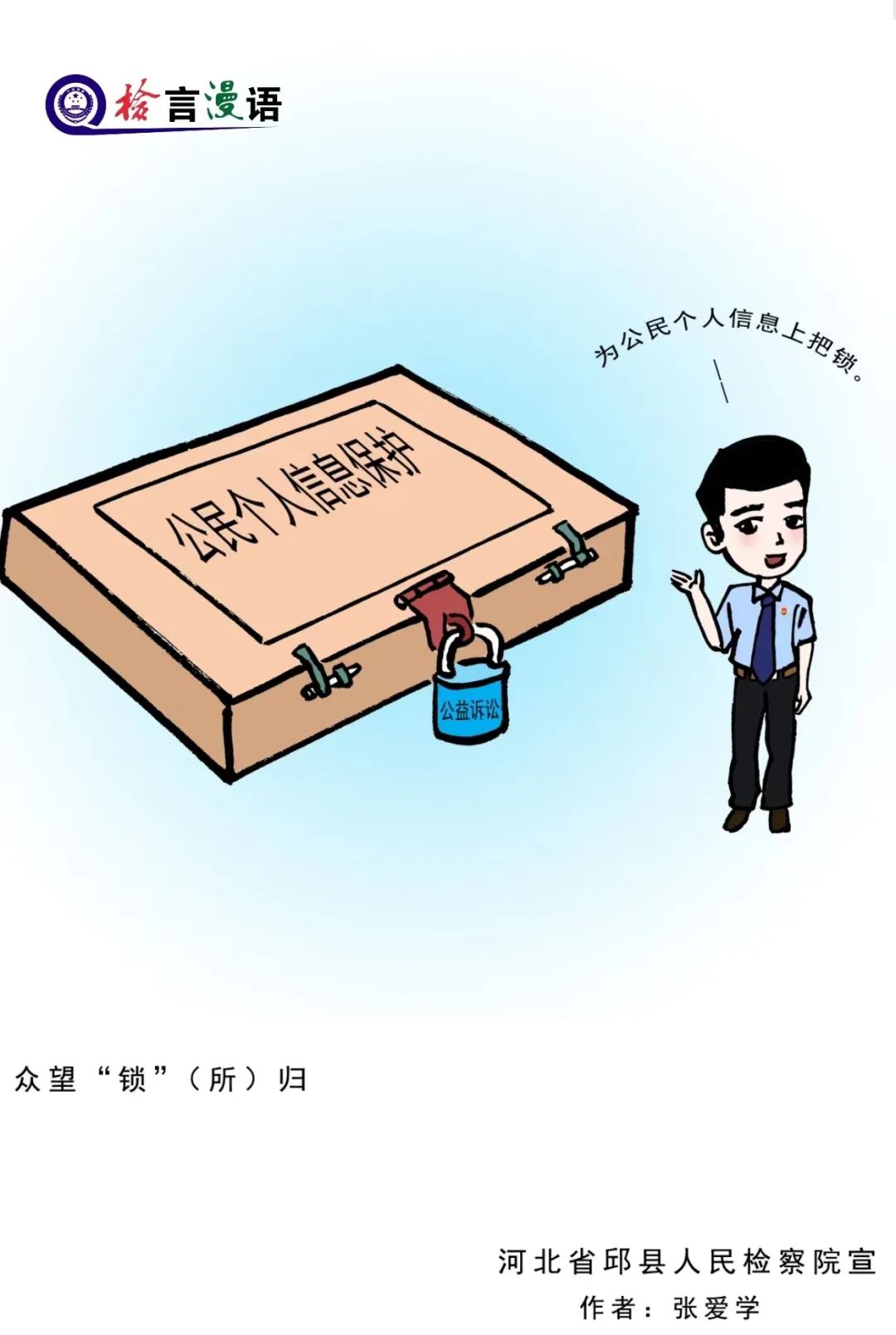 为普及公益诉讼知识,宣传公益诉讼检察职能,邱县检察院创作了“漫”话新时代检察公益诉讼系列漫画。漫画作品聚焦生态环境和资源保护、食品药品安全、国有财产保护等法定检察公益诉讼领域以及知识产权保护、网络生态环境保护、妇女权益保护等新领域,以常见的社会现象为创作题材,运用漫画的表现形式,让人们在欣赏充满讽刺与幽默的漫画作品的同时,增进对检察公益诉讼知识的了解和认识,更好地理解和支持公益诉讼检察工作,助力提升公益诉讼检察的治理效能,促进依法行政、严格执法,维护国家利益和社会公共利益。