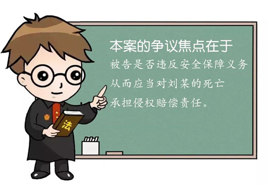 刘某的死亡与被告之间没有因果关系。被告及浴室的工作人员在发现刘某晕倒后即将其扶到更衣室,并进行了紧急抢救,同时也拨打了医疗急救电话,而且被告经营的浴室内有警示标志,被告已经尽到了安全保障义务。