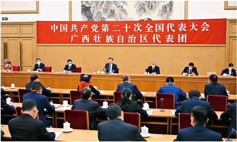 2022年10月17日,习近平同志参加党的二十大广西代表团讨论。新华社记者 谢环驰 摄