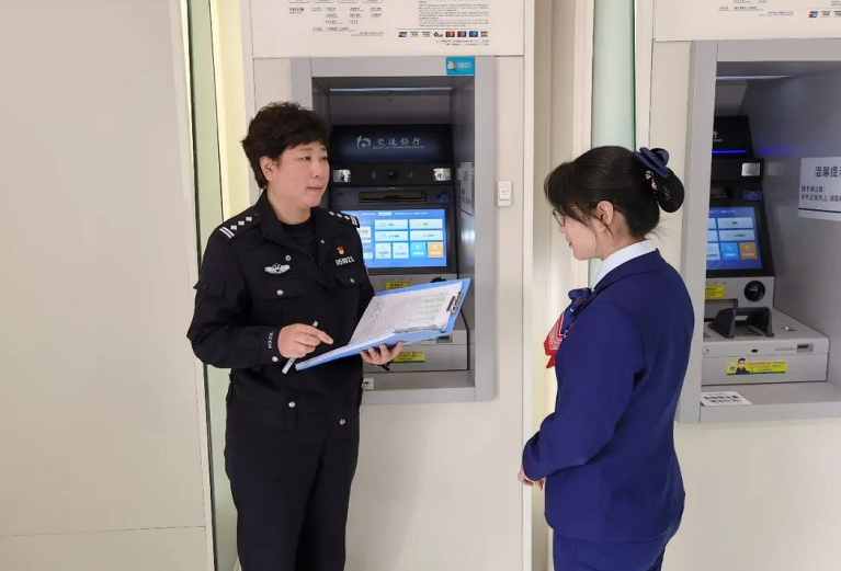 除了施工建设环节,她还会例行对银行开展检查,查看防盗门窗、ATM机、报警器等安全设施配备情况,检验安保人员应急应变能力,对银行工作人员进行反诈培训,都在她的工作范畴。