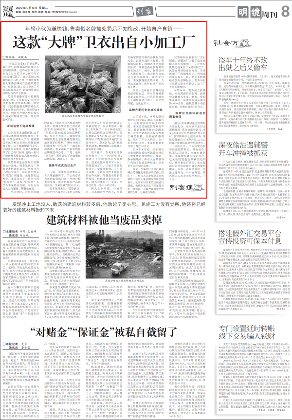 事后,法律意识淡薄的赵某还安慰自己,所有的材料都是李某提供的,自己只是提供人工和机器进行加工,即使有问题,应该也不大。