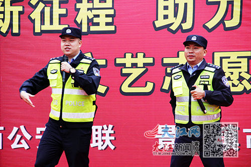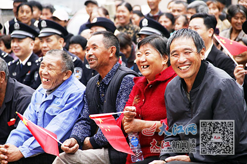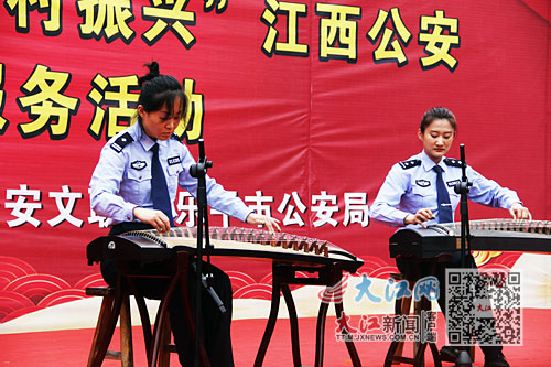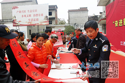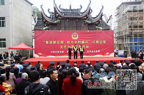 11月3日,“奋进新征程 助力乡村振兴”江西公安文艺志愿服务活动走进乐平市乐港镇韩渡村。 此次活动由江西公安文联、景德镇市公安文联、乐平市公安局联合主办。文艺志愿者服务队围绕“学习二十大精神”“交通安全教育”“反诈宣传”等,通过书法、歌唱、器乐、武术表演等文艺形式给韩渡村的村民们带来了一场视听盛宴。 14时许,广场上早已坐满了前来观看演出的村民,磕着瓜子的大妈、活泼可爱的孩童、拄着拐杖的老爷爷带着自家摇椅、板凳,甚至开着三轮车来到广场上,准备一睹精彩的演出。 14时30分,女声独唱《祖国万岁》拉开了本次文艺演出的序幕,嘹亮的嗓音、饱满的情绪点燃了全场观众的热情。 随后,两位女民警共同带来了一曲国风经典古筝二重奏《追梦人》,琴音动听,让人陶醉。 看完红妆看“武装”,乐平江南武术学校将颇具民族特色的武术展现给观众。耍花刀、翻跟头、腾空侧手翻……引得观众纷纷掏出手机拍摄,武术节目《追风少年》将演出推向高潮。 演出最后,男女老少齐声合唱《没有共产党就没有新中国》,为演出活动画上了完美的句号。 演出结束后,不少村民还停留在广场上,不愿离去。“今天像过年一样,特别喜庆!”韩大妈回味道。原来,当日上午,韩大妈在广场上领取了一副江西公安文联的书法家现场书写的对联。据统计,此次活动共向村民们送出了近200幅书法作品。 活动间隙,江西公安文联的书法家与韩渡村村干部、群众深入交流,谈变化、话发展,描绘出一幅警民和谐的画卷。 现场送福 欢乐开怀 书写对联 说唱表演 古筝演奏 观看演出