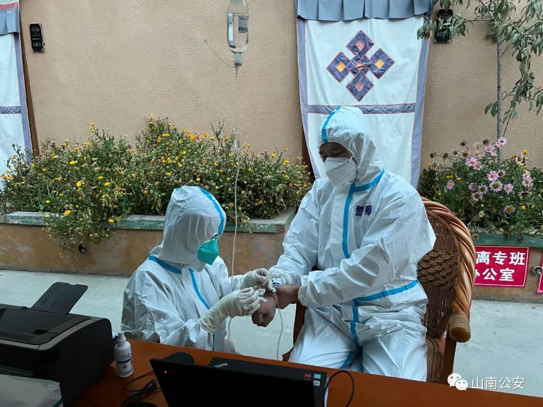 8月11日,马俊勇接到单位的紧急通知,没有丝毫犹豫,立即赶往作为阳性人员中转站的宾馆开展工作。次日凌晨1时40分,该中转站接收到7名核酸检测呈阳性的人员。马俊勇接到消息后,立即与民警顿珠对7名人员逐一进行消毒,并在完成信息登记及入住手续后,将人员带至各自房间,然后对场所进行了全面消杀。