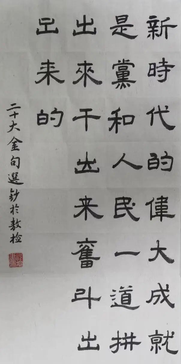 释文:新时代的伟大成就,是党和人民一道拼出来、干出来、奋斗出来的。