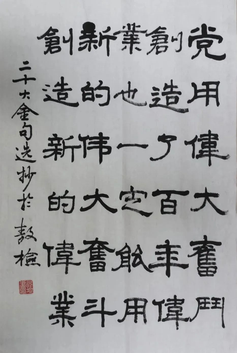 释文:党用伟大奋斗创造了百年伟业,也一定能用新的伟大奋斗创造新的伟业。