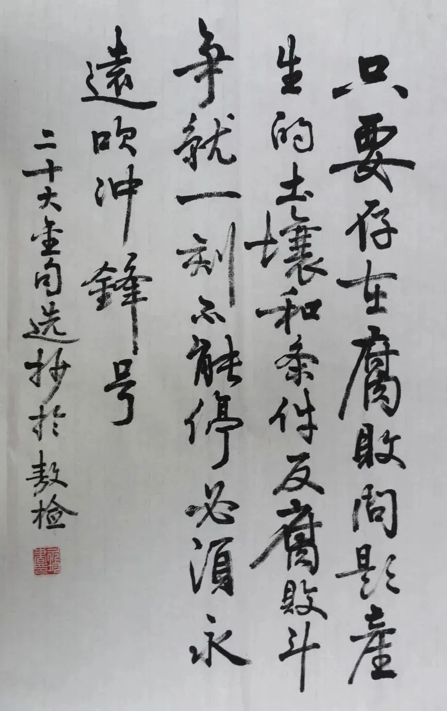 释文:只要存在腐败问题产生的土壤和条件,反腐败斗争就一刻不能停,必须永远吹冲锋号。