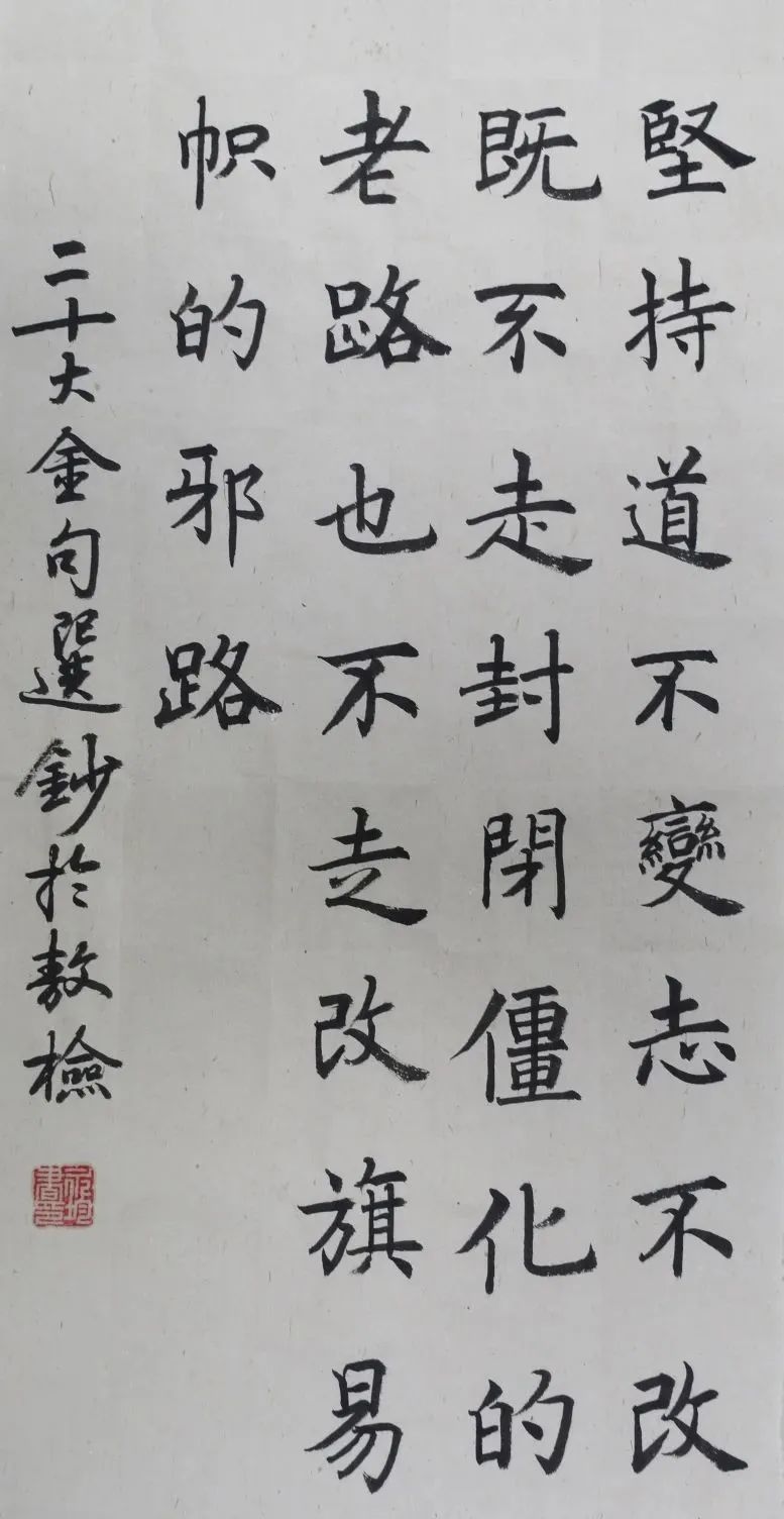 释文:坚持道不变志不改,既不走封闭僵化的老路,也不走改旗易帜的邪路。