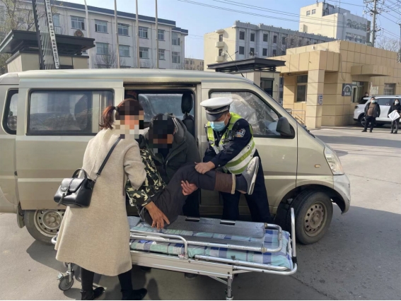 “警察同志,他干活时用锯子割伤了脚面,大量出血,需要赶快去医院救治!”11月23日11:20,衡水市公安交警支队直属一大队执勤交警接指挥中心指令,需要引领一辆从景县来的面包车去市四院。执勤交警立即与求助人取得联系,并在106国道与衡德路交叉口与求助车辆成功对接。