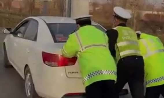 经了解,该车辆行驶至工业一街时,突然熄火且无法启动。为避免影响正常交通秩序,执勤民警合力将车辆推至路边,准备帮助驾驶员推车点火。因该车电瓶亏电严重,执勤民警多次尝试推车点火均未成功,最后执勤民警将巡逻车开到故障车前,以“牵线搭电”的方式成功帮助该驾驶员启动了车辆。