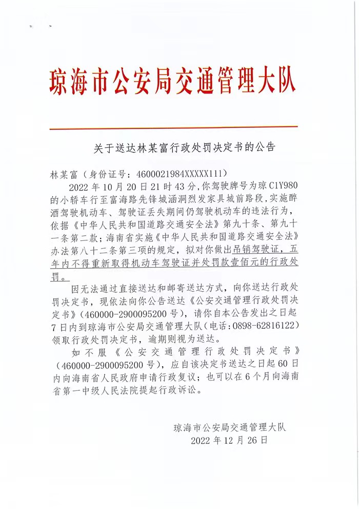 下一篇:关于送达谢某雄行政处罚决定书的公告