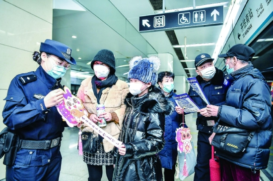 元宵节将至,为创造平安祥和的节日氛围,市公安局公交总队北站治安派出所采取多种措施,强化地铁安保工作,保障群众平安出行。该所青年民辅警制作了节日彩灯,附上反诈主题灯谜,将反诈知识与节日祝福送到乘客手中。同时,与地铁运营方密切配合,加强站区巡逻值守,排查清整风险隐患,确保地铁运营安全、乘车秩序良好。
