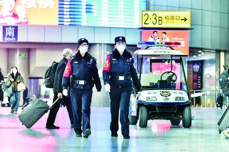 为切实维护春运治安秩序,天津站派出所组织民辅警加大巡逻频次,与车站工作人员密切配合,在售票厅、候车室和进出站口往来巡视,提醒旅客戴好口罩,看管好自己的随身物品,用真诚的话语和周到的服务,换来了旅客的一张张笑脸。