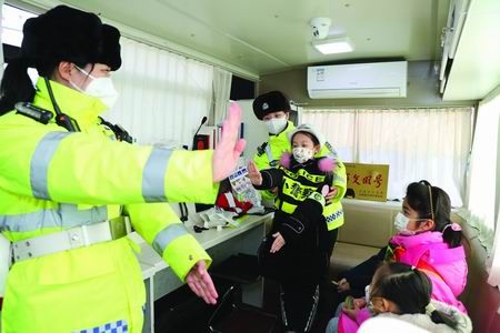 “爷爷,您慢点走,我们扶您过去,注意安全!”“阿姨,请您骑电动自行车时带好头盔。”“叔叔,您越线了,请您退到白色停车线后面。”日前,4名来自天津市春蕾志愿服务队苗苗义工的小志愿者,在老师的带领下来到友谊宾水女子岗,体验交警日常工作,学习交通安全常识。