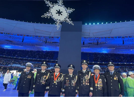 参与北京冬奥会开幕式国旗传递活动的河北公安民警,左二为刘亚斌。