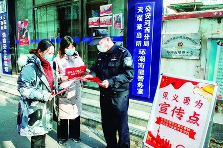 为大力弘扬见义勇为精神,传播社会正能量,今年以来,河西区见义勇为协会先后在公安河西分局友谊路派出所浏阳里警务室、天塔派出所环湖南里警务室、土城派出所瑞江花园警务室建立见义勇为志愿服务站,进一步壮大志愿者队伍,推动见义勇为工作向基层延伸。