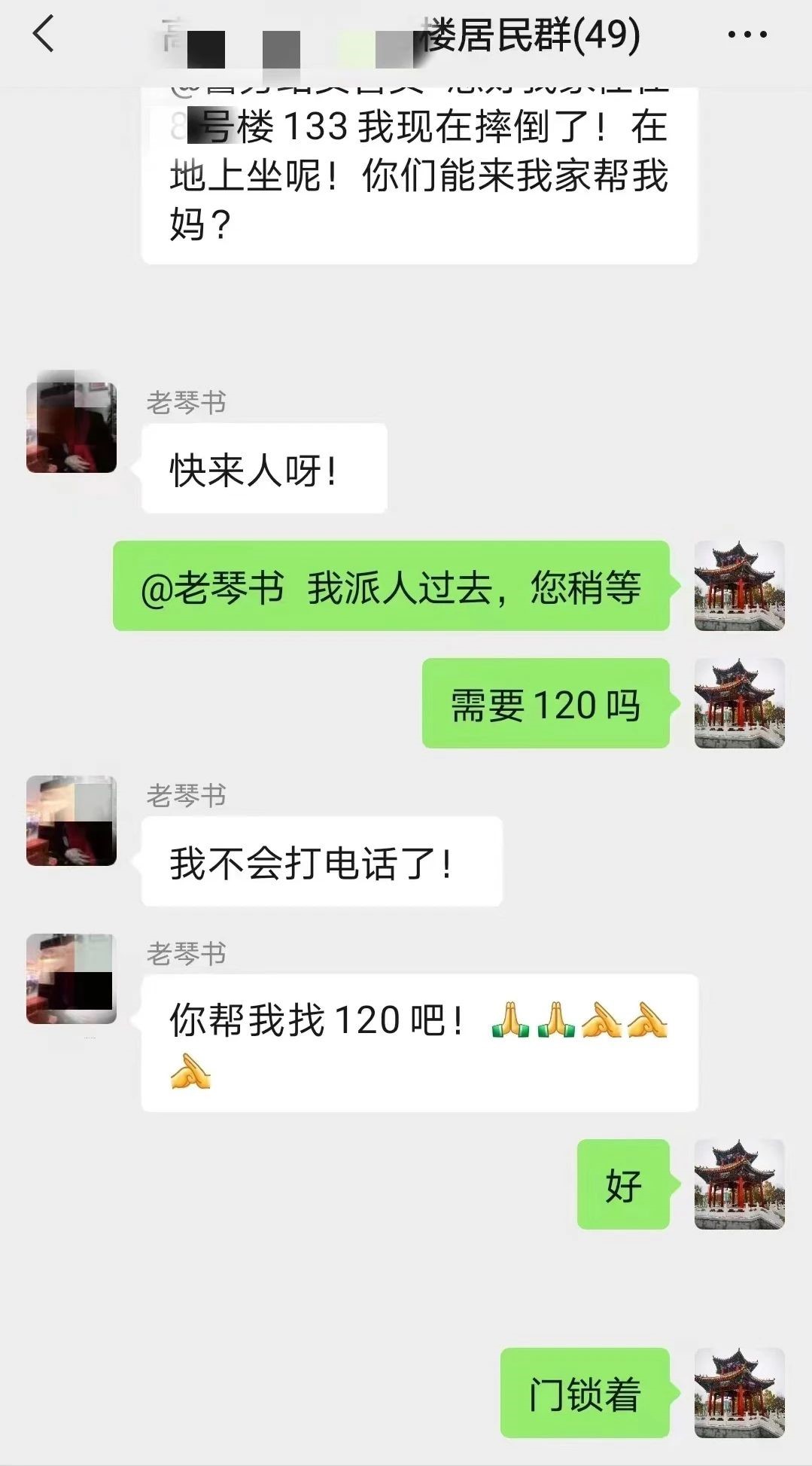 2月15日,居住在广宁辖区高井社区的居民秦先生,在小区群里发送求助信息,声称自己在家中摔倒,无法动弹,请求邻居们来家里帮助他一下。