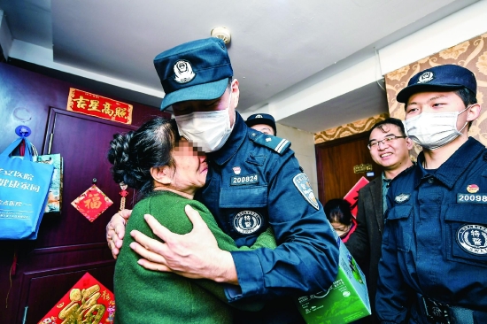 今年3月5日是第60个学雷锋纪念日。连日来,全市各级公安机关广泛开展学雷锋系列活动,采取多种方式为群众办实事办好事,大力弘扬新时代雷锋精神,以实际行动践行“人民公安为人民”的庄严承诺。图为市公安局特警总队三支队民警到重点帮扶老人家中探望慰问,赢得老人的真诚感谢。