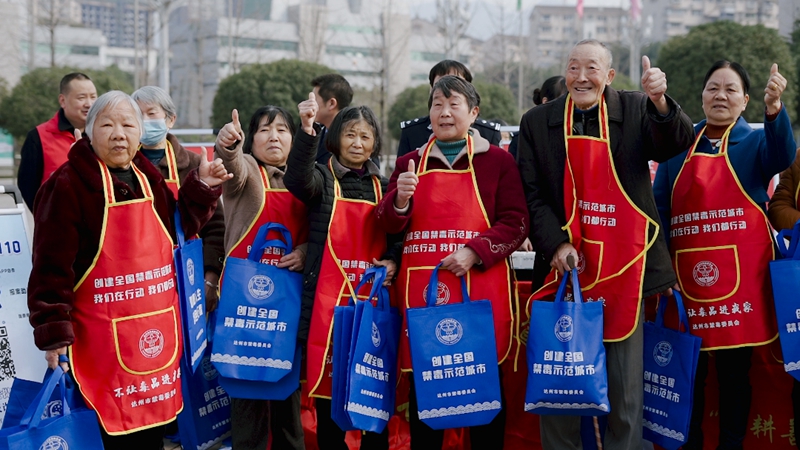 禁毒志愿者还引导群众关注禁毒公众号等官方禁毒新媒体账号,推动线上、线下禁毒宣传,呼吁群众加入禁毒志愿行列,争做“禁毒雷锋”。