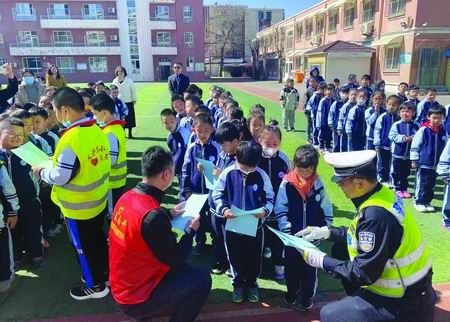 近日,交警南开支队白堤路大队联合天津市农业科学院志愿服务队深入义兴里小学开展“文明守法 平安回家”主题宣传实践活动。